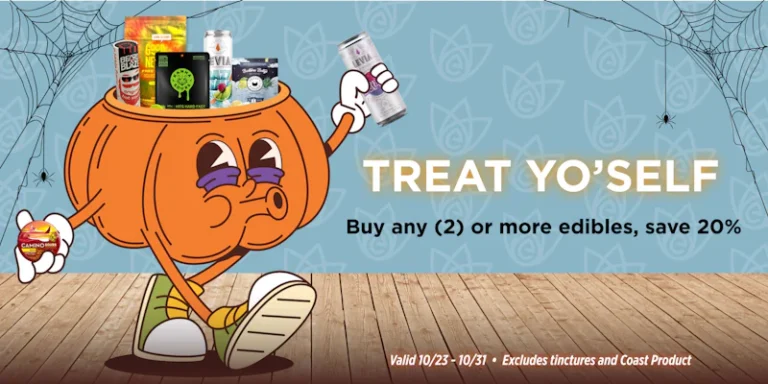 Grab your treats for spooktober! Buy any 2 Coast Cannabis edibles and save $10! Buy any 3 Coast Cannabis edibles and save $20 *pricing reflected at the registers*